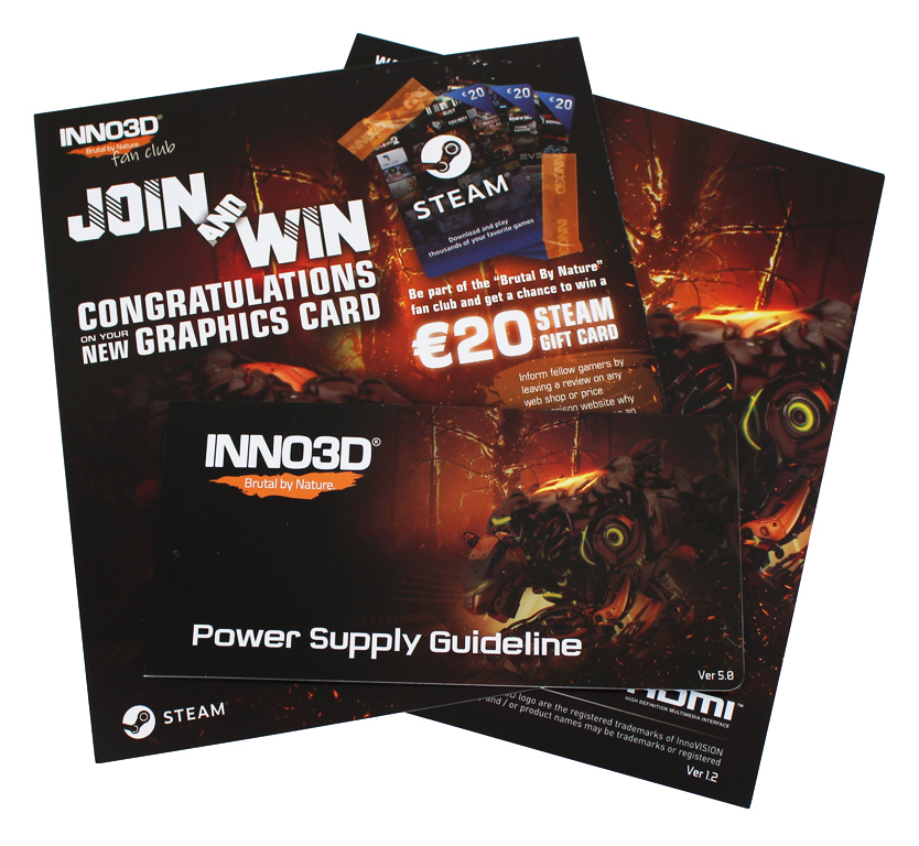 Der Lieferumfang der INNO3D-Grafikkarte im Überblick.