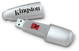 Beginnen wir wieder mit einer Lösung für den kleinen Geldbeutel. Die ersten Modelle der USB-Sticks liegen heute schon bei knapp 25 Euro und verfügen meistens über mindestens 128 MB Speicherkapazität, kleinere Speicher sind vereinzelt noch erhältlich, lohnen sich aber meist im Preis-/Leistungsverhältnis nicht. Als Einsteigermodell haben wir uns ein Produkt der Firma Kingston ausgesucht. Das Produkt Kingston DataTraveler 2.0 verfügt über 256 MB Flashspeicher, wird via USB 2.0 als Plug & Play Gerät unter Windows erkannt (ab Windows ME). Dank des USB 2.0 Interfaces sind Übertragungsraten von max. sieben MB/sek. möglich (Preis ca. 30 Euro).