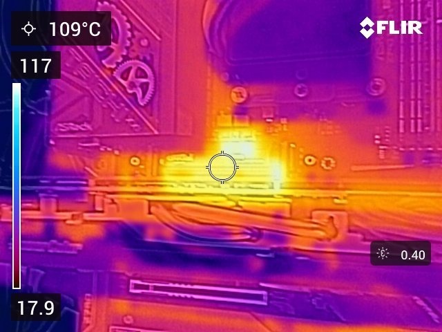 Für unseren Verwendungszweck im Testlab ist die FLIR C5 gut geeignet, wenn es darum geht, Hotspots zu erkennen. Für die Messungen von korrekten Absoluttemperaturen ist der Einsatz von Klebebändern oder Sprays (zur Anpassung des Emissionsgrads) aber unumgänglich. Bei Platinen ist das aufgrund der unterschiedlichen Bauteilkonturen und Oberflächen eher schwierig, bei der Messung von Kühlkörpern oder Gehäusen hingegen sehr gut möglich.