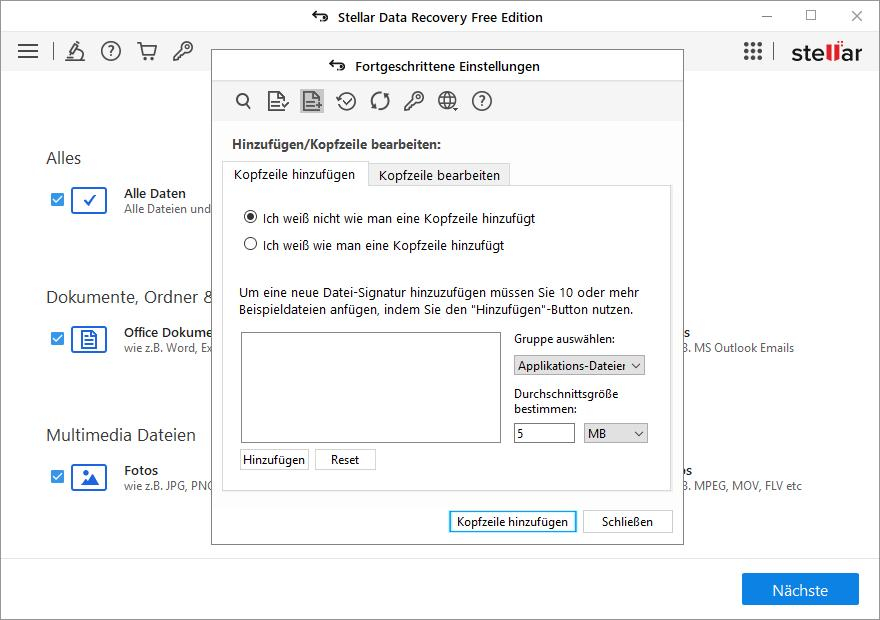 In den Einstellungen kann man spezielle Dateierweiterungen und Signaturen zur Auffindung manuell eintragen und die Suche auch auf bestimmte Dateitypen einschränken. Außerdem bietet die Software die Möglichkeit, dass man eine Wiederherstellung zwischenspeichert und zu einem späteren Zeitpunkt fortsetzt, ohne erneut scannen zu müssen.